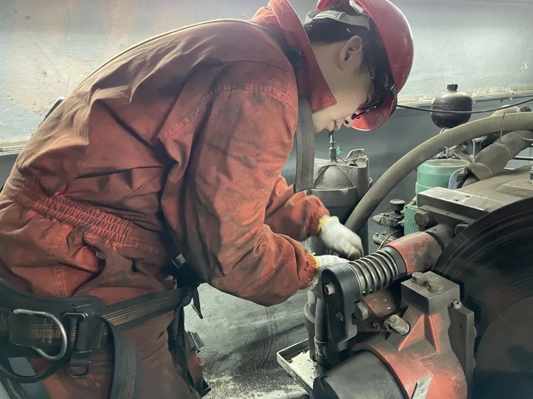臨近春節(jié),運行人員林正杰帶領班組成員例行巡檢,這時監(jiān)控主機報警顯示9號風機液壓油位低、系統(tǒng)壓力低故障,經(jīng)現(xiàn)場排查后判定為高速閘漏油?!翱赡苁敲芊馊匣瘜е侣┯?,我們要馬上進行搶修”只見林正杰說完,轉(zhuǎn)身沖向設備間方向,攜帶特定維修工具與運行班組驅(qū)車前往故障點。